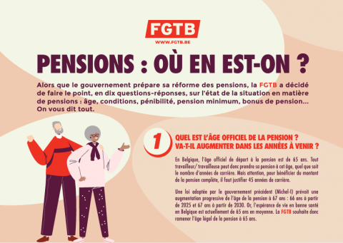 Alors que le gouvernement prépare sa réforme des pensions, la FGTB a décidé de faire le point, en dix questions-réponses, sur l’état de la situation en matière de pensions : âge, conditions, pénibilité, pension minimum, bonus de pension... On vous dit tout.
