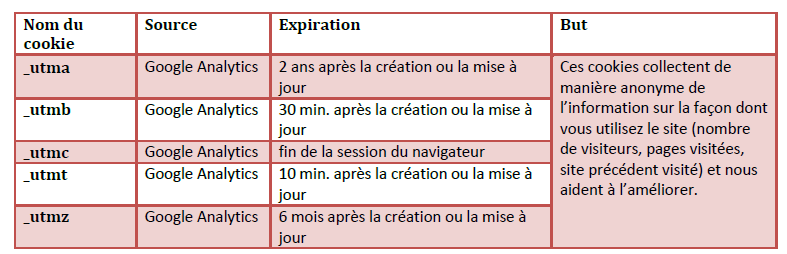 - Nous utilisons pour ce faire Google Analytics dont les cookies ne collectent pas d’information qui vous identifie. L’information collectée est transmise, et stockée, sur des serveurs de Google.