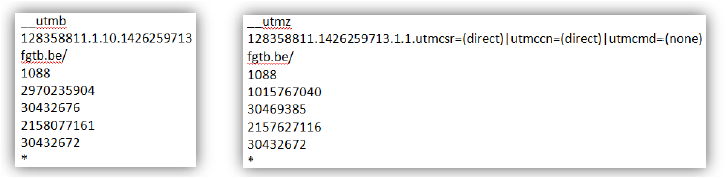- Vous trouverez ici deux exemples réels de cookies statistiques utilisés par notre site.
