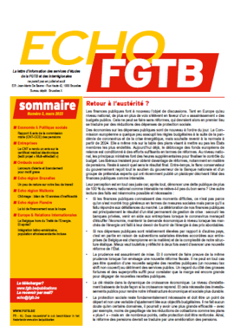 La FGTB n’est pas d’accord avec les recommandations du rapport annuel de la Banque nationale 2022 | CCT CNT : Critère de prédominance pour faciliter l’harmonisation sectorielle du 2e pilier de pension | Campagne d’inspection dans les entreprises du secteur des titres-services | L’indemnité forfaitaire en cas de violence : aussi devant le juge pénal ! | Un arrêt bienvenu de la Cour de cassation sur la responsabilité du maître d’œuvre dans un contexte de sous-traitance | Réforme du Congé-Education Payé en Région bruxelloise | CARTE BLANCHE: concertation entre le gouvernement et l’industrie : donner aux syndicats et aux organisations environnementales une place à part entière | Un meilleur dialogue social en Europe - pour l’instant seulement sur papier | Le gouvernement indonésien fait passer au parlement un projet de loi omnibus «conditionnellement inconstitutionnel»