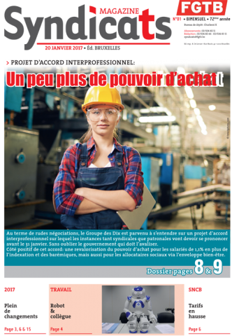 Projet d'accord interprofessionnel : un peu plus de pouvoir d'achat | 2017 : plein de changements | Travail : robot et collègues | SNCB : tarifs en hausse