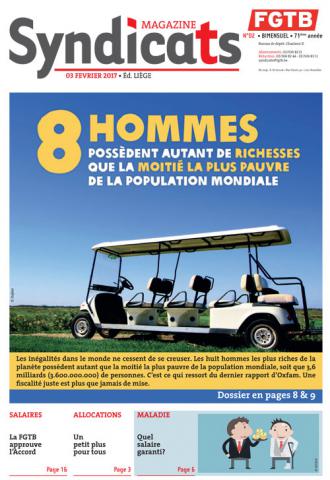 8 hommes possèdent autant de richesses que la moitié la plus pauvre de la population mondiale | Salaires : la FGTB approuve l'Accord | Allocations : un petit peu plus pour tous | Maladie : quel salaire garanti ?